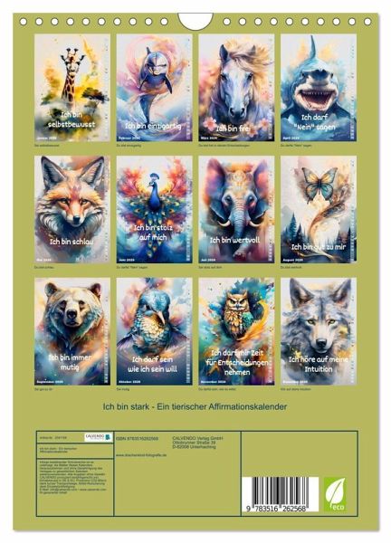 QUALITÄT - Hochwertiger Fotokalender mit 12 wunderschönen Motiven auf lichtbeständigem Bilderdruckpapier, robuste Spiralbindung mit Aufhängebügel.NACHHALTIG - deutliche Abfallreduzierung durch bedarfsgerechte Einzelstückfertigung, umweltfreundliches FSC-zertifiziertes Papier, Produktion in Deutschland, klimabewusste Logistik.PERFEKTES GESCHENK - Kalender für Freunde und Familie, für Kinder und Erwachsene, jung und alt, zu Weihnachten, Geburtstag oder zwischendurch.VIELFALT - Bildkalender in verschiedenen Formaten, z.B. DIN A5, DIN A4, DIN A3 sowie DIN A2. Ob Naturmotiv, Gemälde oder Fotos, ideal für ein persönliches Wohlfühlambiente.Die Kraft der Tiere für die Liebe zu sich selbst. von Autor(in): drachenkind-fotografie