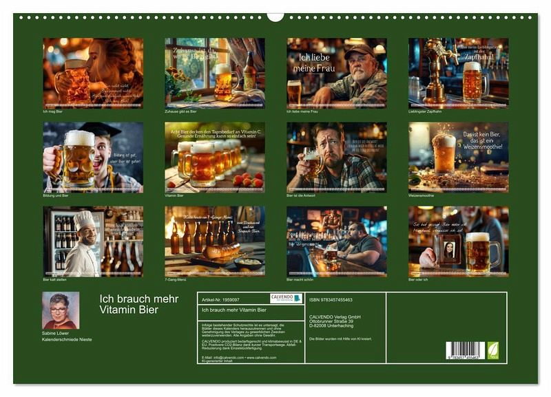QUALITÄT - Hochwertiger Fotokalender mit 12 wunderschönen Motiven auf lichtbeständigem Bilderdruckpapier, robuste Spiralbindung mit Aufhängebügel.NACHHALTIG - deutliche Abfallreduzierung durch bedarfsgerechte Einzelstückfertigung, umweltfreundliches FSC-zertifiziertes Papier, Produktion in Deutschland, klimabewusste Logistik.PERFEKTES GESCHENK - Kalender für Freunde und Familie, für Kinder und Erwachsene, jung und alt, zu Weihnachten, Geburtstag oder zwischendurch.VIELFALT - Bildkalender in verschiedenen Formaten, z.B. DIN A5, DIN A4, DIN A3 sowie DIN A2. Ob Naturmotiv, Gemälde oder Fotos, ideal für ein persönliches Wohlfühlambiente.Coole Sprüche rund ums Bier mit passenden KI-Bildern von Autor(in): Sabine Löwer