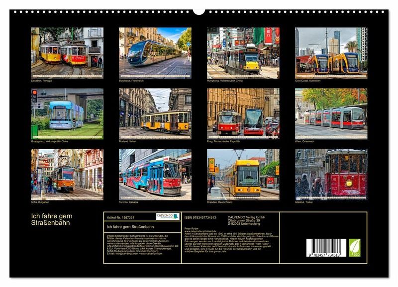 Allein in Deutschland gab es 1900 in etwa 150 Städten Straßenbahnen. Nach dem Höhepunkt des Booms um 1920 und der Verdrängung durch Autos und Busse gibt es schon länger eine Renaissance. Neben neuen hochmodernen Fahrzeugen werden auch nostalgische Bahnen reaktiviert und verzeichnen überall auf der Welt einen großen Zuspruch. Der Fotokünstler Peter Roder hat für diesen Kalender zwölf beeindruckende Aufnahmen zusammengestellt und gestaltet, eine Freude für die Freunde der Straßenbahn und ein schöner Begleiter für das ganze Jahr.