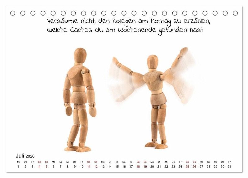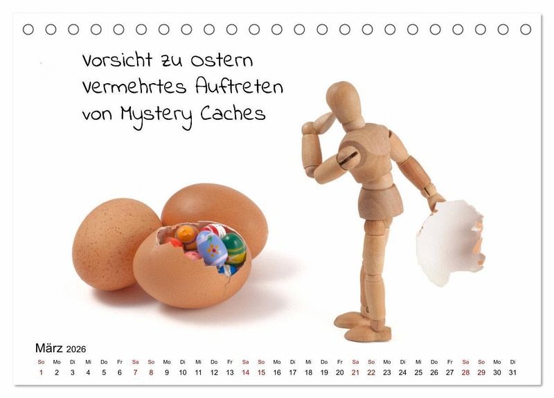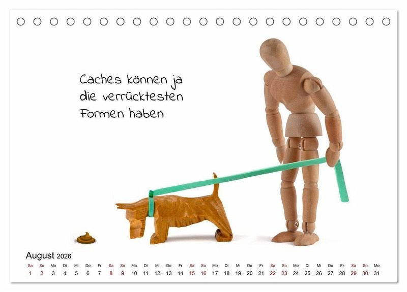 Früher nannte man es Spazierengehen. Und keiner wollte es tun. Heute nennt man es Geocaching und alle jagen mit GPS die gut versteckten Dosen überall auf der Welt. Dass es dabei zu einigen Hindernissen und Herausforderungen kommt, erzäht dieser Kalender