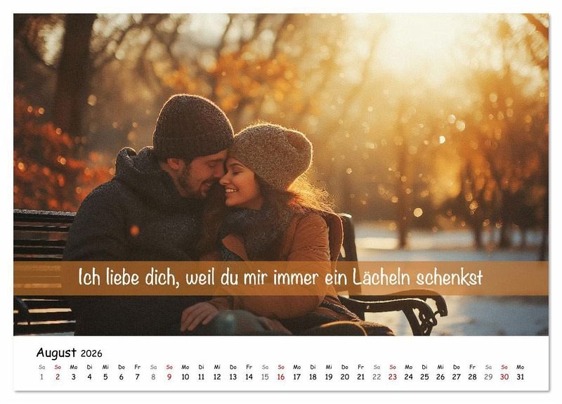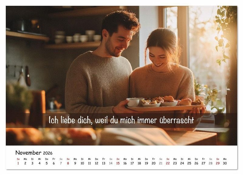 Dieser liebevoll gestaltete Kalender für Paare bringt jeden Monat neue Liebe der Zuneigung: Ich liebe dich, weil... Ein Liebeskalender perfektes Geschenk für Partner, Freundin, Freund oder Geschenk für die Ehefrau oder Ehemann - zu Weihnachten, Valentinstag, Jahrestag oder einfach zwischendurch. Mit zwölf persönlichen Liebeserklärungen schafft dieser KI-generierte Kalender für Partner Nähe, Wärme und emotionale Verbindung und lässt die Beziehung aufleben. Ob als Partnerkalender, Paarkalender oder persönliches Geschenk - er ist ideal für alle, die ihre Liebe feiern möchten. Für Menschen in Beziehungen, die Gefühle, Gemeinsamkeit und besondere Momente wertschätzen. Ein echtes Highlight unter den Geschenkideen für Partner und Partnerinnen.
