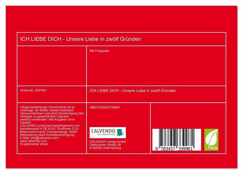 QUALITÄT - Hochwertiger Fotokalender mit 12 wunderschönen Motiven auf lichtbeständigem Bilderdruckpapier, robuste Spiralbindung.NACHHALTIG - deutliche Abfallreduzierung durch bedarfsgerechte Einzelstückfertigung, umweltfreundliches FSC-zertifiziertes Papier, Produktion in Deutschland, klimabewusste Logistik.PERFEKTES GESCHENK - Kalender für Freunde und Familie, für Kinder und Erwachsene, jung und alt, zu Weihnachten, Geburtstag oder zwischendurch.VIELFALT - Bildkalender in verschiedenen Formaten, z.B. DIN A5, DIN A4, DIN A3 sowie DIN A2. Ob Naturmotiv, Gemälde oder Fotos, ideal für ein persönliches Wohlfühlambiente.Emotionaler Liebeskalender für Paare mit zwölf liebevollen ich Liebe dich Botschaften. Ideal zu Weihnachten als Geschenk für Partner, Freundin, Freund, Ehefrau oder Ehemann. von Autor(in): Michael Bihlmayer
