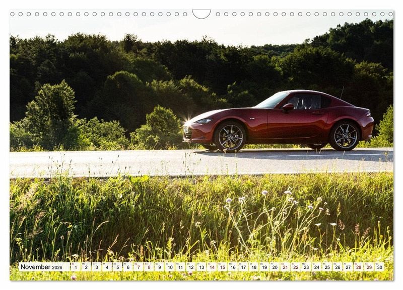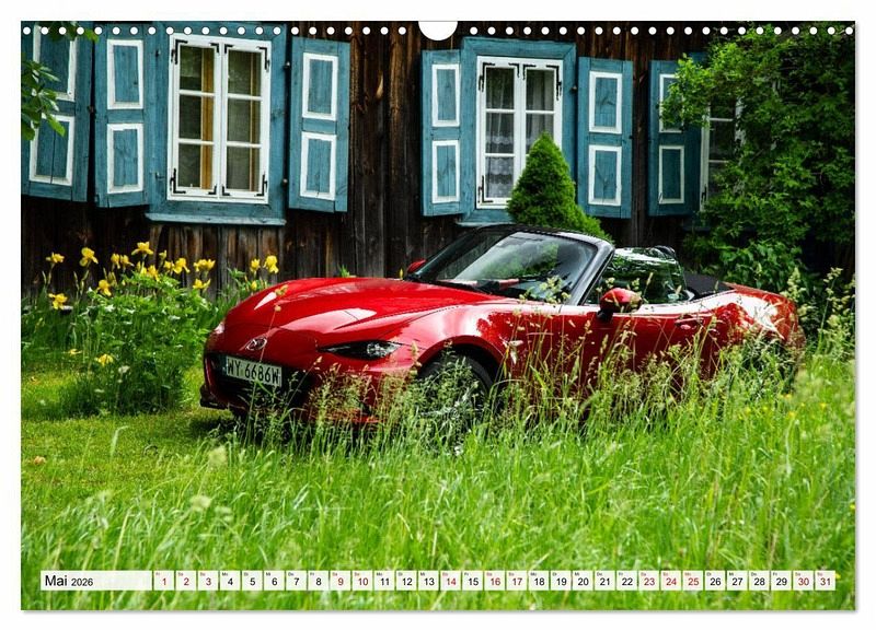 Der Kalender zeigt Mazda MX-5 / Miata in seiner ganzen Flexibilität. Mit Mazda kann man viel mehr sehen und erleben. Ob am Feld, im Dorf oder im Wald. Mazda produziert wahrscheinlich die schönsten Wagen auf der ganzen Welt!