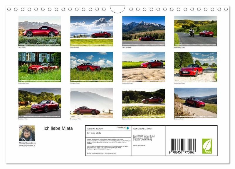 QUALITÄT - Hochwertiger Fotokalender mit 12 wunderschönen Motiven auf lichtbeständigem Bilderdruckpapier, robuste Spiralbindung mit Aufhängebügel.NACHHALTIG - deutliche Abfallreduzierung durch bedarfsgerechte Einzelstückfertigung, umweltfreundliches FSC-zertifiziertes Papier, Produktion in Deutschland, klimabewusste Logistik.PERFEKTES GESCHENK - Kalender für Freunde und Familie, für Kinder und Erwachsene, jung und alt, zu Weihnachten, Geburtstag oder zwischendurch.VIELFALT - Bildkalender in verschiedenen Formaten, z.B. DIN A5, DIN A4, DIN A3 sowie DIN A2. Ob Naturmotiv, Gemälde oder Fotos, ideal für ein persönliches Wohlfühlambiente.Ein unvergessliches Erlebnis mit Mazda MX-5! Fahren Sie mit! von Autor(in): Gospodarek Mikolaj