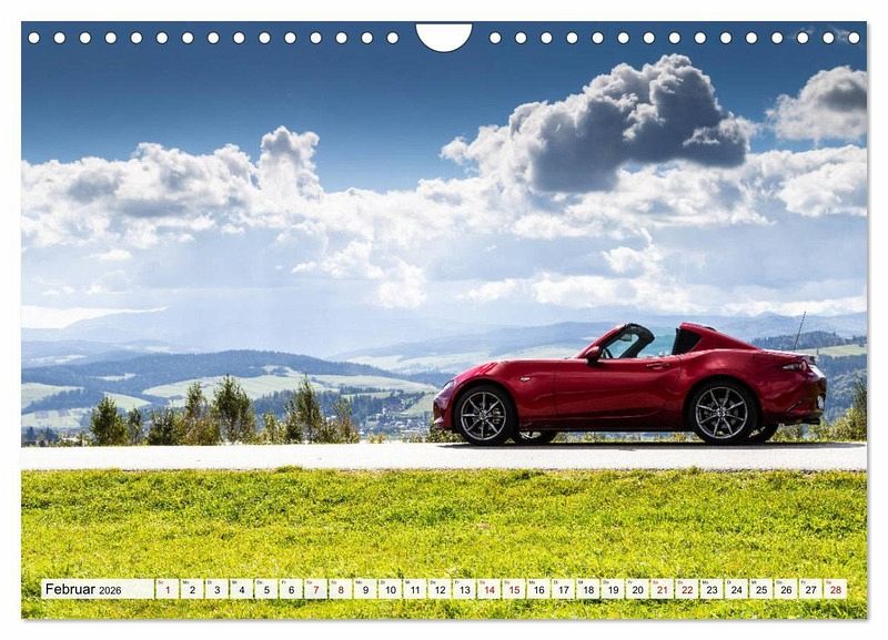 Der Kalender zeigt Mazda MX-5 / Miata in seiner ganzen Flexibilität. Mit Mazda kann man viel mehr sehen und erleben. Ob am Feld, im Dorf oder im Wald. Mazda produziert wahrscheinlich die schönsten Wagen auf der ganzen Welt!