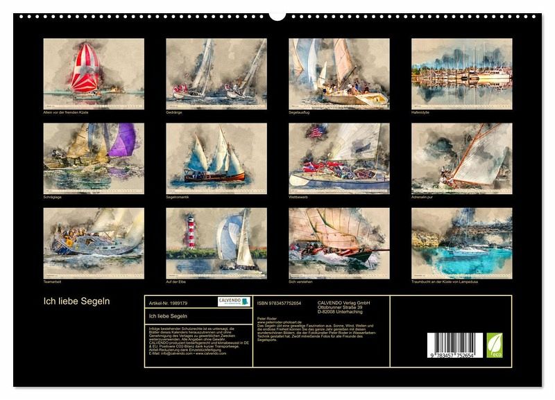 Das Segeln übt eine gewaltige Faszination aus. Sonne, Wind, Wellen und die endlose Freiheit können Sie das ganze Jahr genießen mit diesen wunderschönen Bildern, die der Fotokünstler Peter Roder in Wasserfarben-Technik gestaltet hat. Zwölf mitreißende Fotos für alle Freunde des Segelsports.