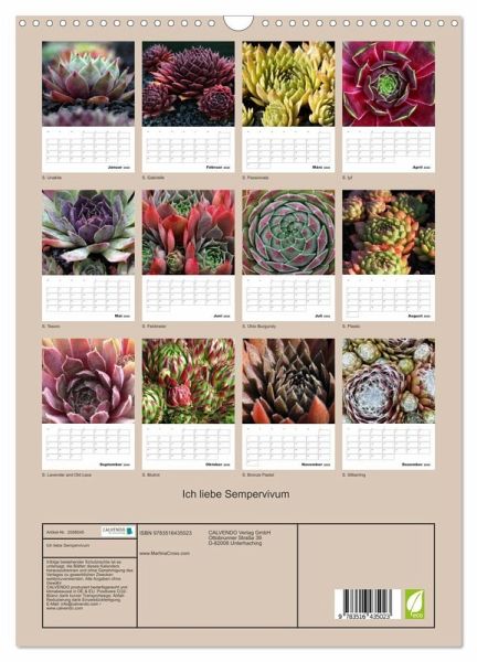 QUALITÄT - Hochwertiger Fotokalender mit 12 wunderschönen Motiven auf lichtbeständigem Bilderdruckpapier, robuste Spiralbindung mit Aufhängebügel.NACHHALTIG - deutliche Abfallreduzierung durch bedarfsgerechte Einzelstückfertigung, umweltfreundliches FSC-zertifiziertes Papier, Produktion in Deutschland, klimabewusste Logistik.PERFEKTES GESCHENK - Kalender für Freunde und Familie, für Kinder und Erwachsene, jung und alt, zu Weihnachten, Geburtstag oder zwischendurch.VIELFALT - Bildkalender in verschiedenen Formaten, z.B. DIN A5, DIN A4, DIN A3 sowie DIN A2. Ob Naturmotiv, Gemälde oder Fotos, ideal für ein persönliches Wohlfühlambiente.Der ideale Kalender für alle Sempervivum Liebhaber von Autor(in): Martina Cross