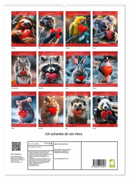 PREMIUM-LINIE - Brillanter Fotokalender mit 12 wunderschönen Motiven, Kunstdruck in Hochglanz in Museumsqualität.QUALITÄT - edle Materialien, stabile Rückwand mit 2 innovativen Einstecktaschen für eine optimale Präsentation an der Wand.NACHHALTIG - deutliche Abfallreduzierung durch bedarfsgerechte Einzelstückfertigung, umweltfreundliches FSC-zertifiziertes Papier, Produktion in Deutschland, klimabewusste Logistik.PERFEKTES GESCHENK - Kalender für Freunde und Familie, für Kinder und Erwachsene, jung und alt, zu Weihnachten, Geburtstag oder zwischendurch.Tiere schenken dir ein Herz. Ideales Geschenk für alle Menschen die dir am Herzen liegen von Autor(in): Peter Rübsamen