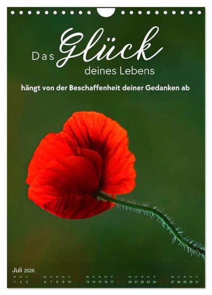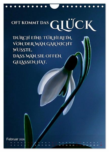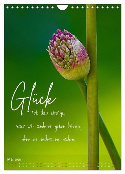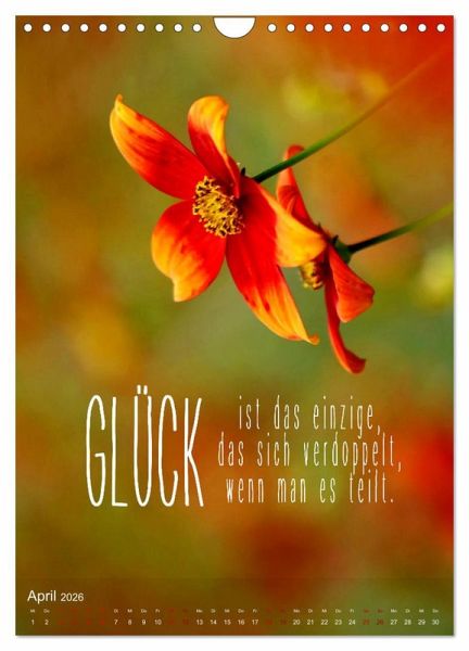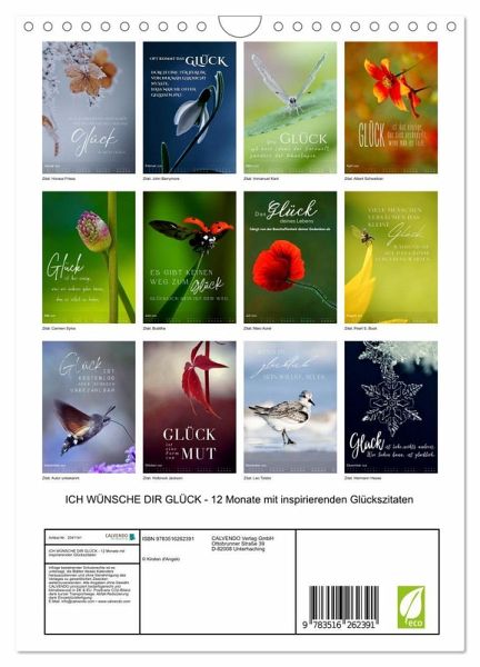 QUALITÄT - Hochwertiger Fotokalender mit 12 wunderschönen Motiven auf lichtbeständigem Bilderdruckpapier, robuste Spiralbindung mit Aufhängebügel.NACHHALTIG - deutliche Abfallreduzierung durch bedarfsgerechte Einzelstückfertigung, umweltfreundliches FSC-zertifiziertes Papier, Produktion in Deutschland, klimabewusste Logistik.PERFEKTES GESCHENK - Kalender für Freunde und Familie, für Kinder und Erwachsene, jung und alt, zu Weihnachten, Geburtstag oder zwischendurch.VIELFALT - Bildkalender in verschiedenen Formaten, z.B. DIN A5, DIN A4, DIN A3 sowie DIN A2. Ob Naturmotiv, Gemälde oder Fotos, ideal für ein persönliches Wohlfühlambiente.Qualitativ hochwertige Fotografien, verknüpft mit Zitaten berühmter Persönlichkeiten zum Thema Glück, begleiten Sie durch Ihr Jahr. von Autor(in): Kirsten d'Angelo