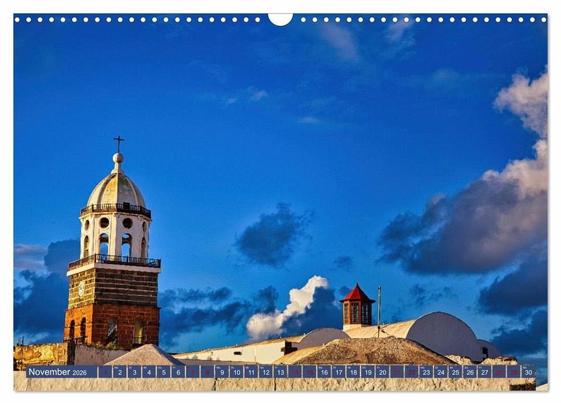 November: In Teguise ragt der Kirchturm des neugotischen Gotteshauses San Miguel gen Himmel