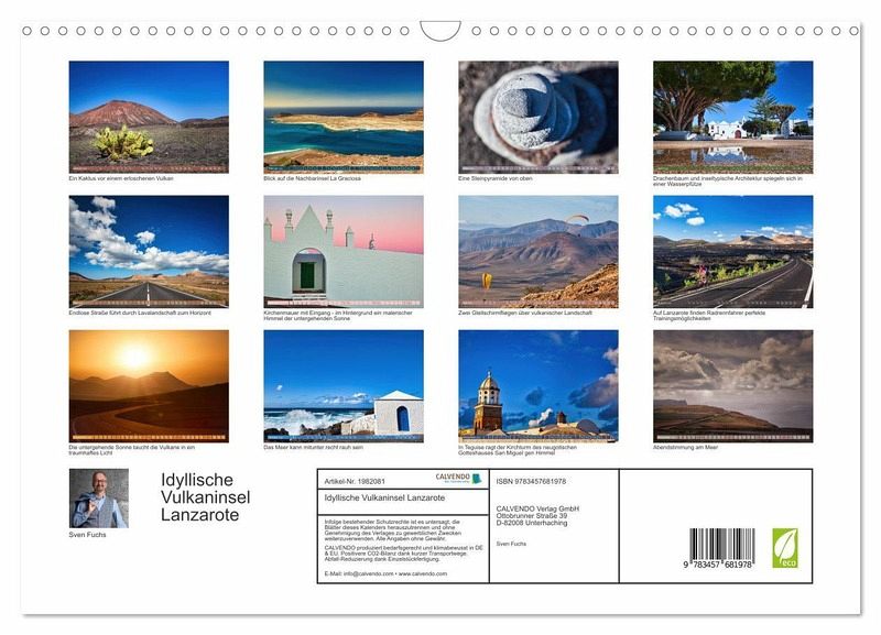 QUALITÄT - Hochwertiger Fotokalender mit 12 wunderschönen Motiven auf lichtbeständigem Bilderdruckpapier, robuste Spiralbindung mit Aufhängebügel.NACHHALTIG - deutliche Abfallreduzierung durch bedarfsgerechte Einzelstückfertigung, umweltfreundliches FSC-zertifiziertes Papier, Produktion in Deutschland, klimabewusste Logistik.PERFEKTES GESCHENK - Kalender für Freunde und Familie, für Kinder und Erwachsene, jung und alt, zu Weihnachten, Geburtstag oder zwischendurch.VIELFALT - Bildkalender in verschiedenen Formaten, z.B. DIN A5, DIN A4, DIN A3 sowie DIN A2. Ob Naturmotiv, Gemälde oder Fotos, ideal für ein persönliches Wohlfühlambiente.Lanzarote: schroff und schön zugleich von Autor(in): Sven Fuchs