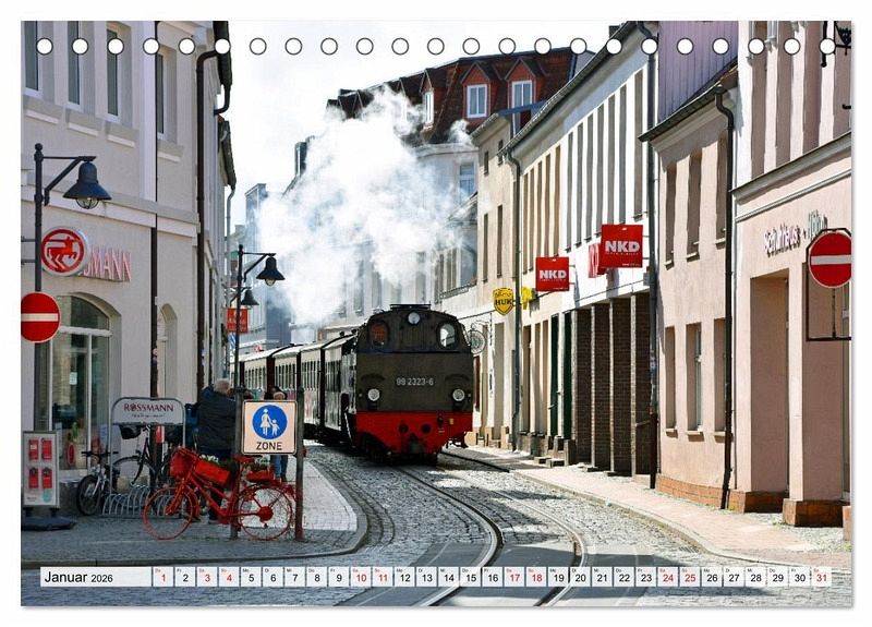 Januar: Die dampfgetriebene Schmalspurbahn "Molli" fährt durch die Mollistraße