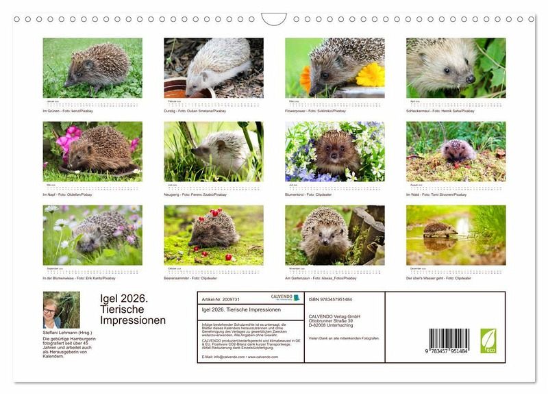 QUALITÄT - Hochwertiger Fotokalender mit 12 wunderschönen Motiven auf lichtbeständigem Bilderdruckpapier, robuste Spiralbindung mit Aufhängebügel.NACHHALTIG - deutliche Abfallreduzierung durch bedarfsgerechte Einzelstückfertigung, umweltfreundliches FSC-zertifiziertes Papier, Produktion in Deutschland, klimabewusste Logistik.PERFEKTES GESCHENK - Kalender für Freunde und Familie, für Kinder und Erwachsene, jung und alt, zu Weihnachten, Geburtstag oder zwischendurch.VIELFALT - Bildkalender in verschiedenen Formaten, z.B. DIN A5, DIN A4, DIN A3 sowie DIN A2. Ob Naturmotiv, Gemälde oder Fotos, ideal für ein persönliches Wohlfühlambiente.12 bezaubernde Bilder von wilden Igeln von Autor(in): Steffani Lehmann