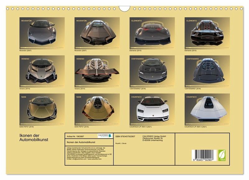 QUALITÄT - Hochwertiger Fotokalender mit 12 wunderschönen Motiven auf lichtbeständigem Bilderdruckpapier, robuste Spiralbindung mit Aufhängebügel.NACHHALTIG - deutliche Abfallreduzierung durch bedarfsgerechte Einzelstückfertigung, umweltfreundliches FSC-zertifiziertes Papier, Produktion in Deutschland, klimabewusste Logistik.PERFEKTES GESCHENK - Kalender für Freunde und Familie, für Kinder und Erwachsene, jung und alt, zu Weihnachten, Geburtstag oder zwischendurch.VIELFALT - Bildkalender in verschiedenen Formaten, z.B. DIN A5, DIN A4, DIN A3 sowie DIN A2. Ob Naturmotiv, Gemälde oder Fotos, ideal für ein persönliches Wohlfühlambiente.Sechs Ikonen aus dem Hause Lamborghini von Autor(in): rsvienna
