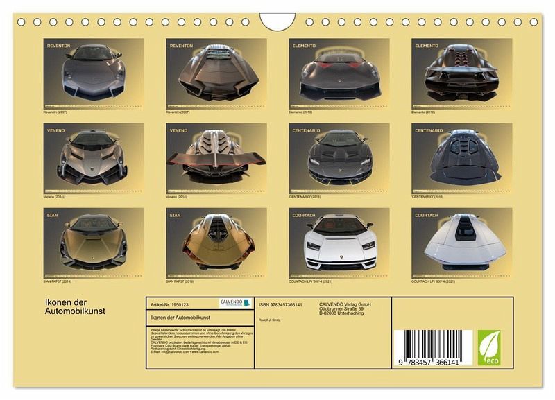 QUALITÄT - Hochwertiger Fotokalender mit 12 wunderschönen Motiven auf lichtbeständigem Bilderdruckpapier, robuste Spiralbindung mit Aufhängebügel.NACHHALTIG - deutliche Abfallreduzierung durch bedarfsgerechte Einzelstückfertigung, umweltfreundliches FSC-zertifiziertes Papier, Produktion in Deutschland, klimabewusste Logistik.PERFEKTES GESCHENK - Kalender für Freunde und Familie, für Kinder und Erwachsene, jung und alt, zu Weihnachten, Geburtstag oder zwischendurch.VIELFALT - Bildkalender in verschiedenen Formaten, z.B. DIN A5, DIN A4, DIN A3 sowie DIN A2. Ob Naturmotiv, Gemälde oder Fotos, ideal für ein persönliches Wohlfühlambiente.Sechs Ikonen aus dem Hause Lamborghini von Autor(in): rsvienna