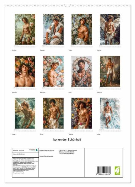 Tauchen Sie ein in die Welt der Adonis-Männer, die durch ihre unvergleichliche Schönheit und eindrucksvolle Präsenz bestechen. Jeder dieser Männer strahlt eine faszinierende Kombination aus körperlicher Perfektion und charismatischer Ausstrahlung aus. Mit kraftvollen Muskeln und ästhetischen Proportionen erinnern sie an die mythologischen Götter des Olymps. Alle hier gezeigten Bilder wurden mit Sorgfalt, Liebe und mit Hilfe einer KI generiert. Abschließend werden sie mit Bildbearbeitungsprogrammen überarbeitet und in den Kalender eingefügt.