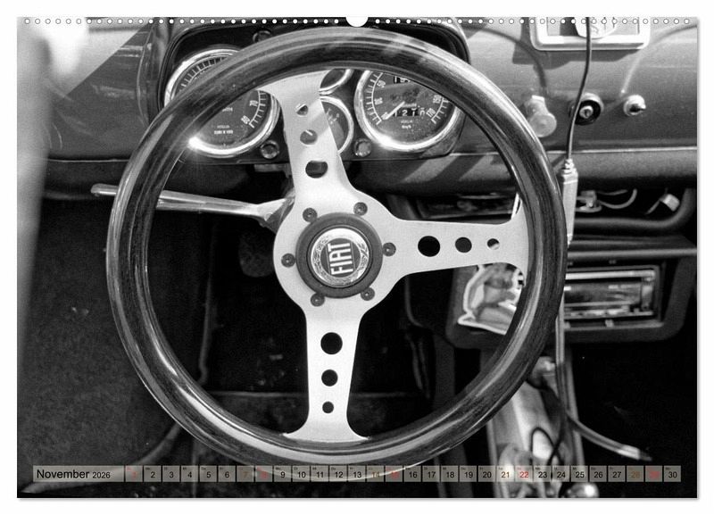 November: Runde Armaturen und Lenkrad eines getunten Fiat