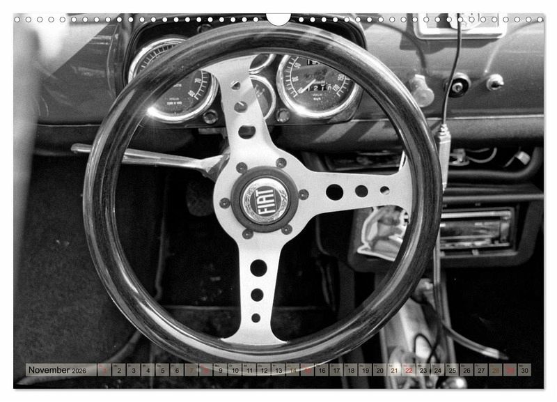 November: Runde Armaturen und Lenkrad eines getunten Fiat