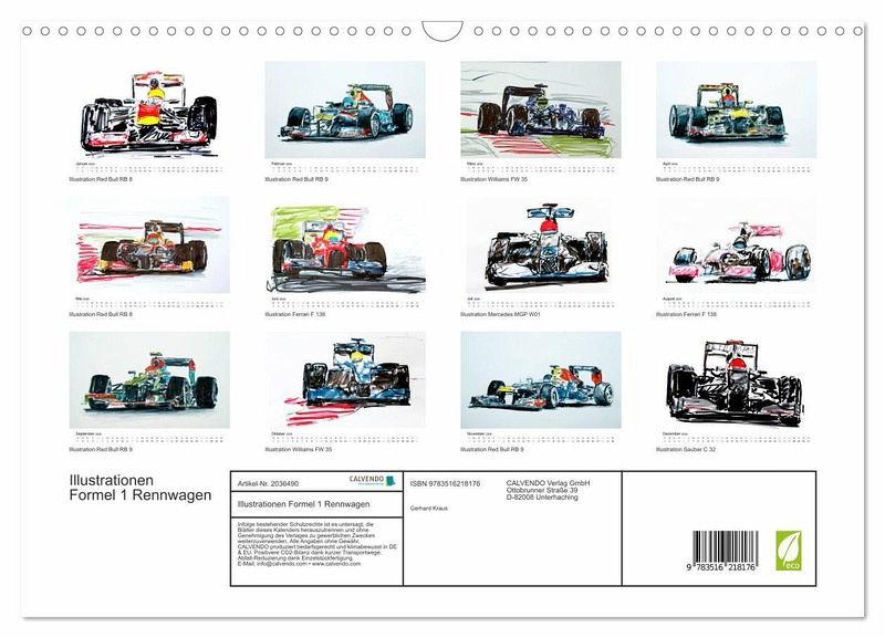 QUALITÄT - Hochwertiger Fotokalender mit 12 wunderschönen Motiven auf lichtbeständigem Bilderdruckpapier, robuste Spiralbindung mit Aufhängebügel.NACHHALTIG - deutliche Abfallreduzierung durch bedarfsgerechte Einzelstückfertigung, umweltfreundliches FSC-zertifiziertes Papier, Produktion in Deutschland, klimabewusste Logistik.PERFEKTES GESCHENK - Kalender für Freunde und Familie, für Kinder und Erwachsene, jung und alt, zu Weihnachten, Geburtstag oder zwischendurch.VIELFALT - Bildkalender in verschiedenen Formaten, z.B. DIN A5, DIN A4, DIN A3 sowie DIN A2. Ob Naturmotiv, Gemälde oder Fotos, ideal für ein persönliches Wohlfühlambiente.Farbig gezeichnete Formel 1 Rennwagen von Autor(in): Gerhard Kraus