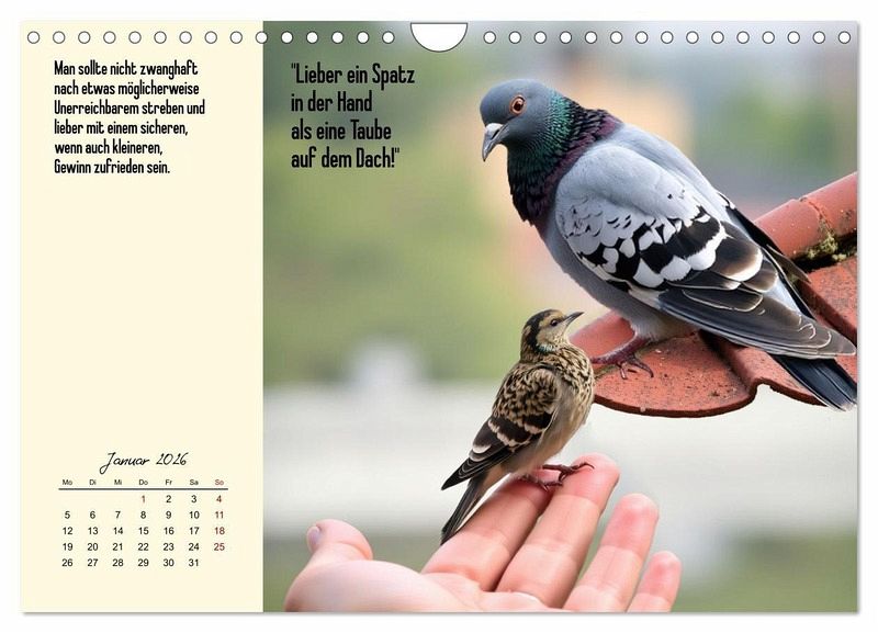 QUALITÄT - Hochwertiger Fotokalender mit 12 wunderschönen Motiven auf lichtbeständigem Bilderdruckpapier, robuste Spiralbindung mit Aufhängebügel.NACHHALTIG - deutliche Abfallreduzierung durch bedarfsgerechte Einzelstückfertigung, umweltfreundliches FSC-zertifiziertes Papier, Produktion in Deutschland, klimabewusste Logistik.PERFEKTES GESCHENK - Kalender für Freunde und Familie, für Kinder und Erwachsene, jung und alt, zu Weihnachten, Geburtstag oder zwischendurch.VIELFALT - Bildkalender in verschiedenen Formaten, z.B. DIN A5, DIN A4, DIN A3 sowie DIN A2. Ob Naturmotiv, Gemälde oder Fotos, ideal für ein persönliches Wohlfühlambiente.Alte und bekannte Sprichworte mit passenden Bildern von Autor(in): Claudia Kleemann
