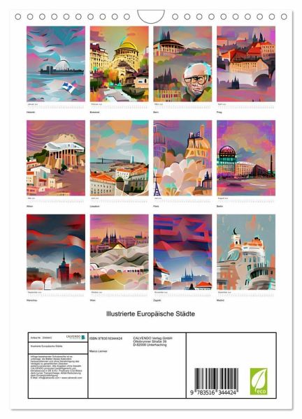 QUALITÄT - Hochwertiger Fotokalender mit 12 wunderschönen Motiven auf lichtbeständigem Bilderdruckpapier, robuste Spiralbindung mit Aufhängebügel.NACHHALTIG - deutliche Abfallreduzierung durch bedarfsgerechte Einzelstückfertigung, umweltfreundliches FSC-zertifiziertes Papier, Produktion in Deutschland, klimabewusste Logistik.PERFEKTES GESCHENK - Kalender für Freunde und Familie, für Kinder und Erwachsene, jung und alt, zu Weihnachten, Geburtstag oder zwischendurch.VIELFALT - Bildkalender in verschiedenen Formaten, z.B. DIN A5, DIN A4, DIN A3 sowie DIN A2. Ob Naturmotiv, Gemälde oder Fotos, ideal für ein persönliches Wohlfühlambiente.Entdecke 12 verschiedene Europäische Städte als schöne Illustrationen in einem Kalender von Autor(in): Marco Lermer