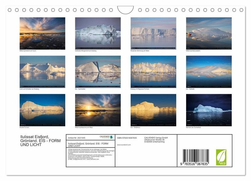 QUALITÄT - Hochwertiger Fotokalender mit 12 wunderschönen Motiven auf lichtbeständigem Bilderdruckpapier, robuste Spiralbindung mit Aufhängebügel.NACHHALTIG - deutliche Abfallreduzierung durch bedarfsgerechte Einzelstückfertigung, umweltfreundliches FSC-zertifiziertes Papier, Produktion in Deutschland, klimabewusste Logistik.PERFEKTES GESCHENK - Kalender für Freunde und Familie, für Kinder und Erwachsene, jung und alt, zu Weihnachten, Geburtstag oder zwischendurch.VIELFALT - Bildkalender in verschiedenen Formaten, z.B. DIN A5, DIN A4, DIN A3 sowie DIN A2. Ob Naturmotiv, Gemälde oder Fotos, ideal für ein persönliches Wohlfühlambiente.Grönlands Eisberge in der Mitternachtssonne von Autor(in): Lucyna Koch