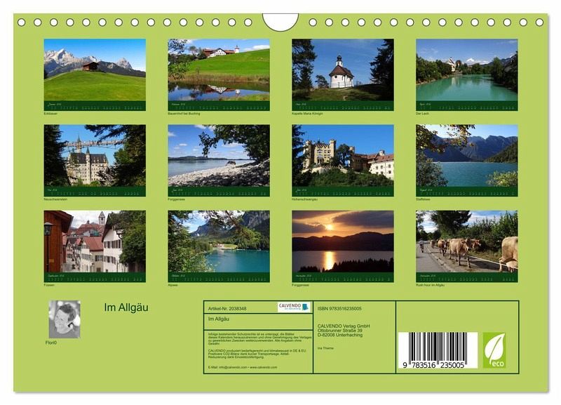 QUALITÄT - Hochwertiger Fotokalender mit 12 wunderschönen Motiven auf lichtbeständigem Bilderdruckpapier, robuste Spiralbindung mit Aufhängebügel.NACHHALTIG - deutliche Abfallreduzierung durch bedarfsgerechte Einzelstückfertigung, umweltfreundliches FSC-zertifiziertes Papier, Produktion in Deutschland, klimabewusste Logistik.PERFEKTES GESCHENK - Kalender für Freunde und Familie, für Kinder und Erwachsene, jung und alt, zu Weihnachten, Geburtstag oder zwischendurch.VIELFALT - Bildkalender in verschiedenen Formaten, z.B. DIN A5, DIN A4, DIN A3 sowie DIN A2. Ob Naturmotiv, Gemälde oder Fotos, ideal für ein persönliches Wohlfühlambiente.Das Allgäu in Bayern und Baden Württemberg von Autor(in): Flori0