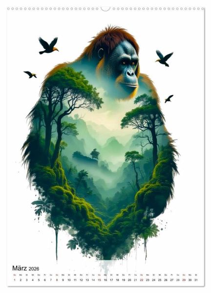 Der KI-Kalender vereint eindrucksvolle Tierportraits mit faszinierenden Landschaften in einem einzigartigen Double-Exposure-Stil. Jedes Monatsmotiv zeigt die ungezähmte Schönheit der Wildnis, künstlerisch verschmolzen mit der Seele der Natur.