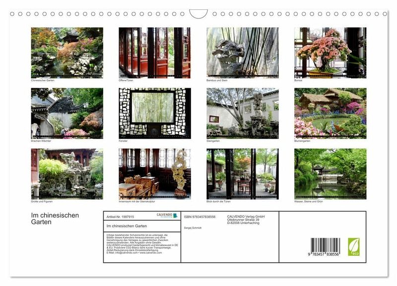 QUALITÄT - Hochwertiger Fotokalender mit 12 wunderschönen Motiven auf lichtbeständigem Bilderdruckpapier, robuste Spiralbindung mit Aufhängebügel.NACHHALTIG - deutliche Abfallreduzierung durch bedarfsgerechte Einzelstückfertigung, umweltfreundliches FSC-zertifiziertes Papier, Produktion in Deutschland, klimabewusste Logistik.PERFEKTES GESCHENK - Kalender für Freunde und Familie, für Kinder und Erwachsene, jung und alt, zu Weihnachten, Geburtstag oder zwischendurch.VIELFALT - Bildkalender in verschiedenen Formaten, z.B. DIN A5, DIN A4, DIN A3 sowie DIN A2. Ob Naturmotiv, Gemälde oder Fotos, ideal für ein persönliches Wohlfühlambiente.Bilder aus berühmten chinesischen Gärten. von Autor(in): Sergej Schmidt