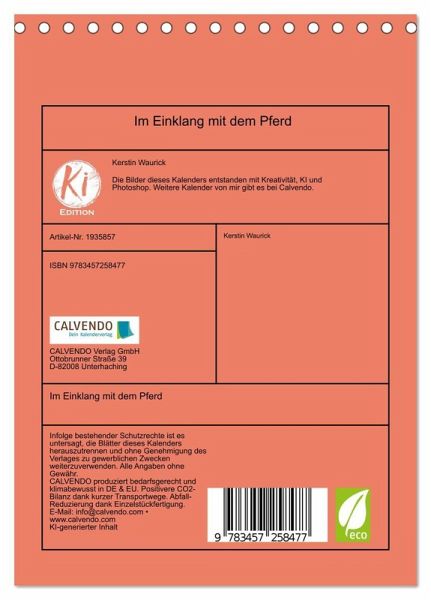 QUALITÄT - Hochwertiger Fotokalender mit 12 wunderschönen Motiven auf lichtbeständigem Bilderdruckpapier, robuste Spiralbindung.NACHHALTIG - deutliche Abfallreduzierung durch bedarfsgerechte Einzelstückfertigung, umweltfreundliches FSC-zertifiziertes Papier, Produktion in Deutschland, klimabewusste Logistik.PERFEKTES GESCHENK - Kalender für Freunde und Familie, für Kinder und Erwachsene, jung und alt, zu Weihnachten, Geburtstag oder zwischendurch.VIELFALT - Bildkalender in verschiedenen Formaten, z.B. DIN A5, DIN A4, DIN A3 sowie DIN A2. Ob Naturmotiv, Gemälde oder Fotos, ideal für ein persönliches Wohlfühlambiente.Mit dem Partner Pferd unterwegs in Natur und Alltag von Autor(in): Kerstin Waurick