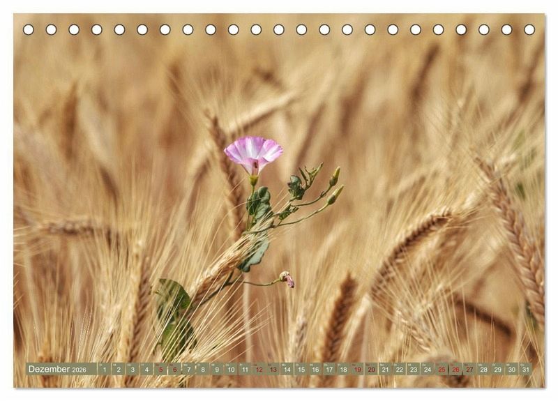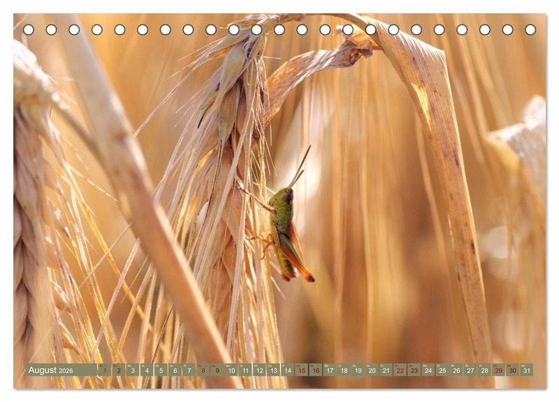 Wenn man im Sommer an einem Korn- oder Getreidefeld entlang geht, sollte man die Augen offen halten. Das Feld ist voller Leben. Kleine wie größere Tiere, sowie verschieden Blumen findet man dort. In diesem Kalender sind einige wunderschöne Impressionen in dieser goldgelben Umgebung festgehalten.