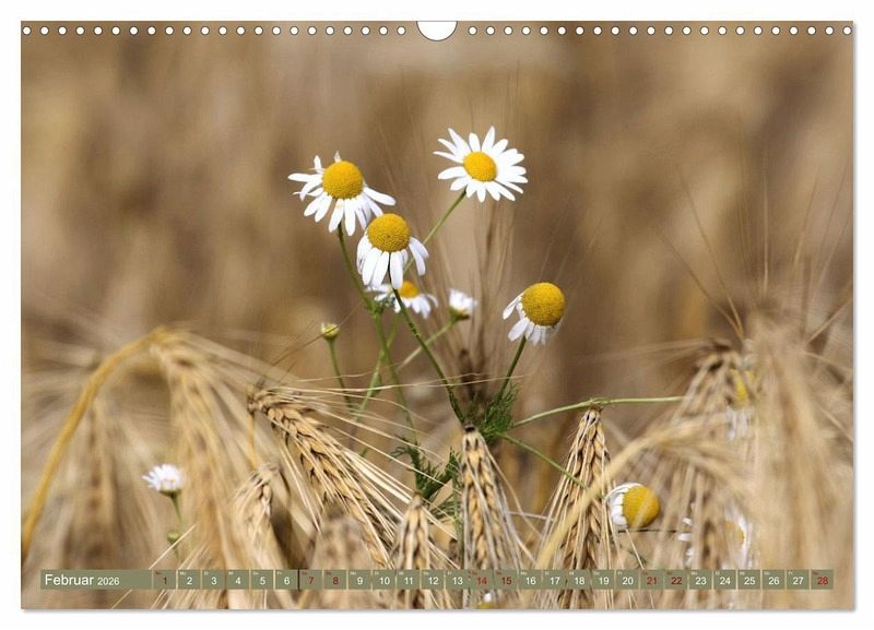 Wenn man im Sommer an einem Korn- oder Getreidefeld entlang geht, sollte man die Augen offen halten. Das Feld ist voller Leben. Kleine wie größere Tiere, sowie verschieden Blumen findet man dort. In diesem Kalender sind einige wunderschöne Impressionen in dieser goldgelben Umgebung festgehalten.