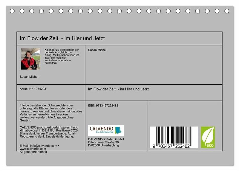 Erleben Sie jeden Tag bewusst und achtsam mit diesem Kalender "Im Flow der Zeit - Im Hier und Jetzt". Lassen Sie sich von inspirierenden Zitaten, stimmungsvollen Bildern begleiten, die Sie ermutigen, den Moment zu genießen und sich gleichzeitig im Fluss des Lebens treiben zu lassen. Erleben Sie, wie erfüllend es sein kann, den Alltag bewusst zu gestalten, sich von der Zeit tragen zu lassen und dabei stets im Hier und Jetzt zu verweilen. Perfekt für alle, die Klarheit, Ruhe und Inspiration suchen. Dieser Kalender wurde mit Unterstützung der KI erstellt.