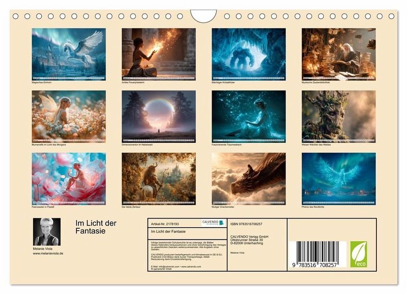 QUALITÄT - Hochwertiger Fotokalender mit 12 wunderschönen Motiven auf lichtbeständigem Bilderdruckpapier, robuste Spiralbindung mit Aufhängebügel.NACHHALTIG - deutliche Abfallreduzierung durch bedarfsgerechte Einzelstückfertigung, umweltfreundliches FSC-zertifiziertes Papier, Produktion in Deutschland, klimabewusste Logistik.PERFEKTES GESCHENK - Kalender für Freunde und Familie, für Kinder und Erwachsene, jung und alt, zu Weihnachten, Geburtstag oder zwischendurch.VIELFALT - Bildkalender in verschiedenen Formaten, z.B. DIN A5, DIN A4, DIN A3 sowie DIN A2. Ob Naturmotiv, Gemälde oder Fotos, ideal für ein persönliches Wohlfühlambiente.Ein Jahr voller Magie erleben von Autor(in): Melanie Viola