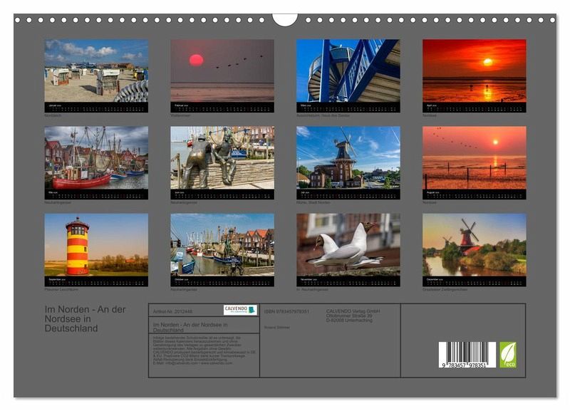 QUALITÄT - Hochwertiger Fotokalender mit 12 wunderschönen Motiven auf lichtbeständigem Bilderdruckpapier, robuste Spiralbindung mit Aufhängebügel.NACHHALTIG - deutliche Abfallreduzierung durch bedarfsgerechte Einzelstückfertigung, umweltfreundliches FSC-zertifiziertes Papier, Produktion in Deutschland, klimabewusste Logistik.PERFEKTES GESCHENK - Kalender für Freunde und Familie, für Kinder und Erwachsene, jung und alt, zu Weihnachten, Geburtstag oder zwischendurch.VIELFALT - Bildkalender in verschiedenen Formaten, z.B. DIN A5, DIN A4, DIN A3 sowie DIN A2. Ob Naturmotiv, Gemälde oder Fotos, ideal für ein persönliches Wohlfühlambiente.Bilder von der Nordseeküste Deutschlands - Region Norden/Norddeich von Autor(in): Rolande