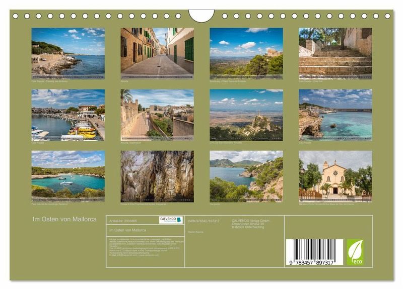 13 eindrucksvolle Bilder für Liebhaber und Interessierte der östlichen Seite Mallorcas - unter anderem Cala Rajada oder Alcudia. Urlaubsfeeling pur für 12 Monate.
