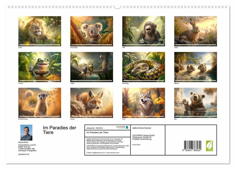 PREMIUM-LINIE - Brillanter Fotokalender mit 12 wunderschönen Motiven, Kunstdruck in Hochglanz in Museumsqualität.QUALITÄT - edle Materialien, stabile Rückwand mit 2 innovativen Einstecktaschen für eine optimale Präsentation an der Wand.NACHHALTIG - deutliche Abfallreduzierung durch bedarfsgerechte Einzelstückfertigung, umweltfreundliches FSC-zertifiziertes Papier, Produktion in Deutschland, klimabewusste Logistik.PERFEKTES GESCHENK - Kalender für Freunde und Familie, für Kinder und Erwachsene, jung und alt, zu Weihnachten, Geburtstag oder zwischendurch.Tiere in Ihrem Paradies laden zum Geniessen ein von Autor(in): Daniel Rohr