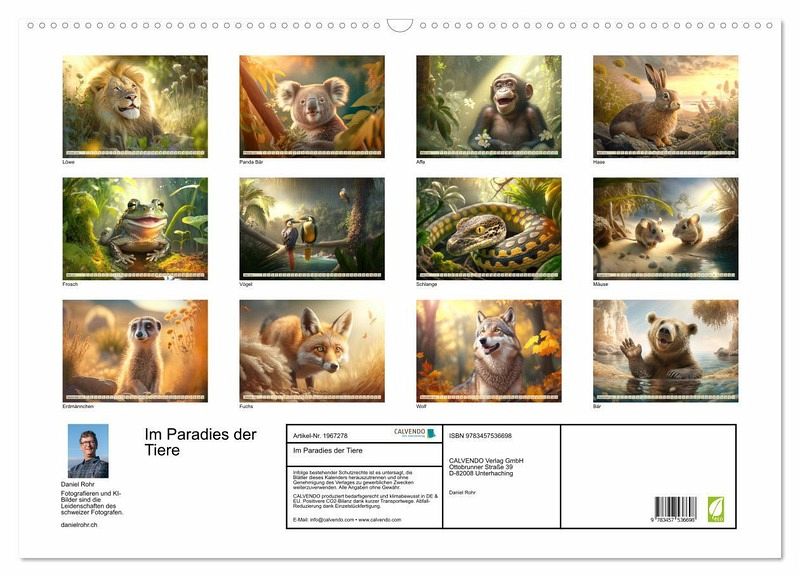 QUALITÄT - Hochwertiger Fotokalender mit 12 wunderschönen Motiven auf lichtbeständigem Bilderdruckpapier, robuste Spiralbindung mit Aufhängebügel.NACHHALTIG - deutliche Abfallreduzierung durch bedarfsgerechte Einzelstückfertigung, umweltfreundliches FSC-zertifiziertes Papier, Produktion in Deutschland, klimabewusste Logistik.PERFEKTES GESCHENK - Kalender für Freunde und Familie, für Kinder und Erwachsene, jung und alt, zu Weihnachten, Geburtstag oder zwischendurch.VIELFALT - Bildkalender in verschiedenen Formaten, z.B. DIN A5, DIN A4, DIN A3 sowie DIN A2. Ob Naturmotiv, Gemälde oder Fotos, ideal für ein persönliches Wohlfühlambiente.Tiere in Ihrem Paradies laden zum Geniessen ein von Autor(in): Daniel Rohr