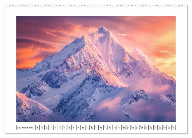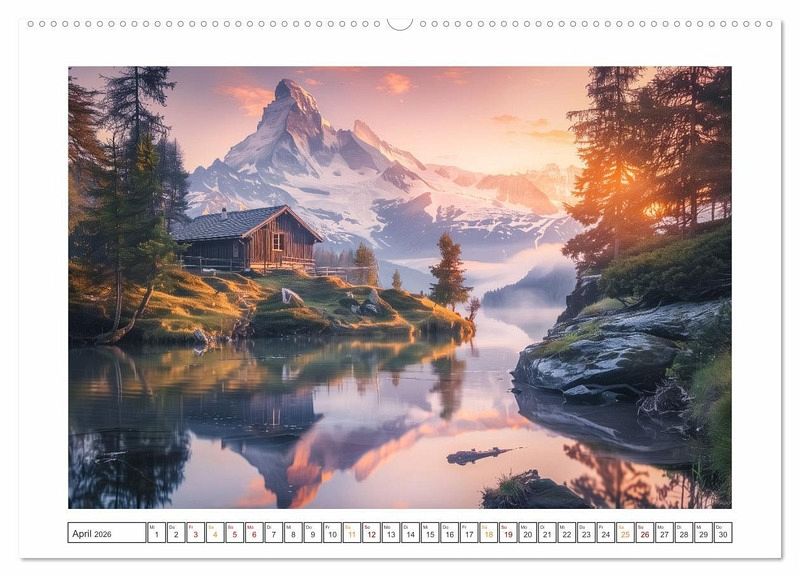 Erkunden Sie die majestätischen Gipfel, atmen Sie die klare Bergluft ein und lassen Sie sich von der Stille der Natur umarmen. Ob Sie sich dem Gipfelsturm stellen oder einfach nur die Ruhe genießen möchten - hier finden Sie das perfekte Refugium für Körper und Seele. Alle hier gezeigten Bilder wurden mit Sorgfalt, Liebe und mit Hilfe einer KI generiert. Abschließend werden sie mit Bildbearbeitungsprogrammen überarbeitet und in den Kalender eingefügt.