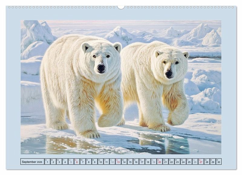 Dieser Kalender präsentiert eindrucksvolle Szenen aus dem rauen Leben der Eisbären. Sie sind die wahren Herrscher des ewigen Eises. Mit scharfen Sinnen und einer unerschütterlichen Ruhe durchqueren sie eine der lebensfeindlichsten Regionen der Erde. Ihre Welt ist geprägt von Kälte, Weite und Überlebenskunst und doch steckt in jedem Bild ein Hauch von Erhabenheit. Alle Bilder wurden mit der Hilfe von KI erstellt und bieten ein visuelles Erlebnis, das Respekt für die Natur und ihre wilden Bewohner weckt.