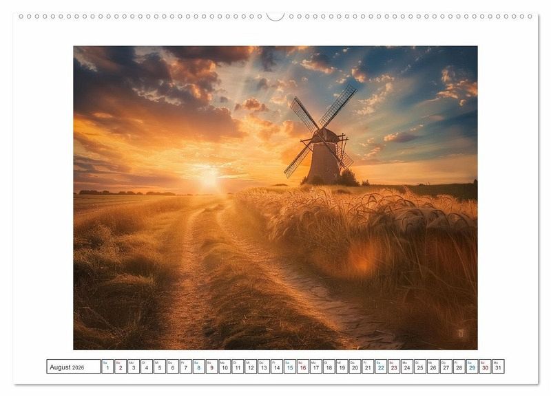 August: Windmühlen wiegen sich im sanften Hauch, und die Zeit verliert sich im Zauber des Augenblicks