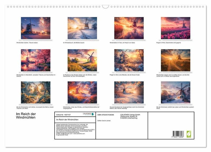 QUALITÄT - Hochwertiger Fotokalender mit 12 wunderschönen Motiven auf lichtbeständigem Bilderdruckpapier, robuste Spiralbindung mit Aufhängebügel.NACHHALTIG - deutliche Abfallreduzierung durch bedarfsgerechte Einzelstückfertigung, umweltfreundliches FSC-zertifiziertes Papier, Produktion in Deutschland, klimabewusste Logistik.PERFEKTES GESCHENK - Kalender für Freunde und Familie, für Kinder und Erwachsene, jung und alt, zu Weihnachten, Geburtstag oder zwischendurch.VIELFALT - Bildkalender in verschiedenen Formaten, z.B. DIN A5, DIN A4, DIN A3 sowie DIN A2. Ob Naturmotiv, Gemälde oder Fotos, ideal für ein persönliches Wohlfühlambiente.Diese majestätischen Gebilde, von sanften Winden bewegt, weben Geschichten vergangener Tage und verleihen der Umgebung einen Hauch von Nostalgie und Zauber. von Autor(in): Steffen Gierok ; Magik Artist Design