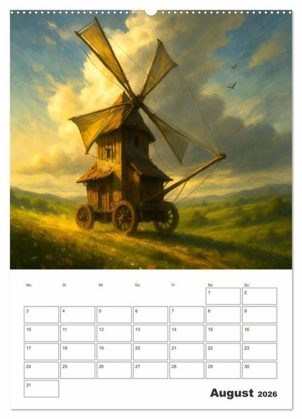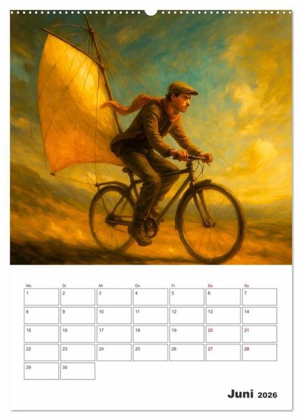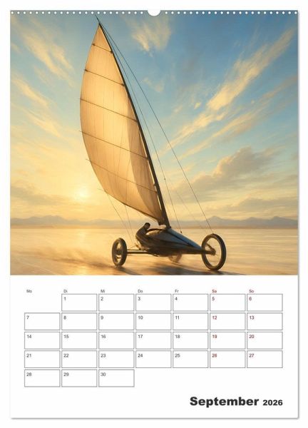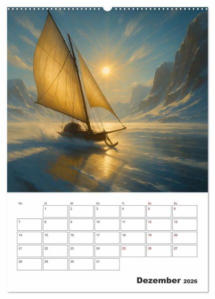 Ob auf hoher See, über goldene Salzebenen oder durch verschneite Bergwelten - dieser Kalender zeigt in episch gestalteten und mit KI generierten Motiven, wie vielfältig und kraftvoll windgetriebene Fortbewegung sein kann.