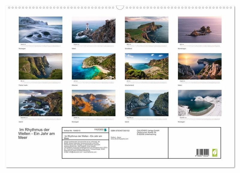 Entdecken Sie den neuen Landschaftskalender von Stefan L. Beyer: Atemberaubende Meeresmotive, die jede Jahreszeit in ihrer einzigartigen Schönheit festhalten. Ob sanfte Frühlingswellen, strahlender Sommerhimmel, stürmische Herbsttage oder verschneite Winterküsten - dieser Kalender nimmt Sie mit auf eine Reise entlang faszinierender Küstenlandschaften. Tauchen Sie Monat für Monat in die beruhigende und zugleich kraftvolle Atmosphäre des Meeres ein. Ideal für Ihr Zuhause oder als besonderes Geschenk!
