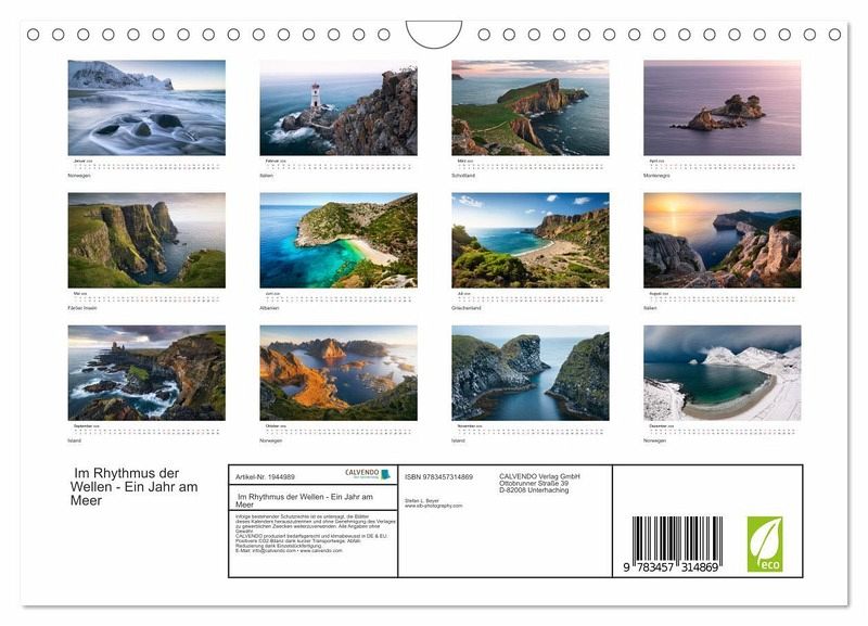 Entdecken Sie den neuen Landschaftskalender von Stefan L. Beyer: Atemberaubende Meeresmotive, die jede Jahreszeit in ihrer einzigartigen Schönheit festhalten. Ob sanfte Frühlingswellen, strahlender Sommerhimmel, stürmische Herbsttage oder verschneite Winterküsten - dieser Kalender nimmt Sie mit auf eine Reise entlang faszinierender Küstenlandschaften. Tauchen Sie Monat für Monat in die beruhigende und zugleich kraftvolle Atmosphäre des Meeres ein. Ideal für Ihr Zuhause oder als besonderes Geschenk!