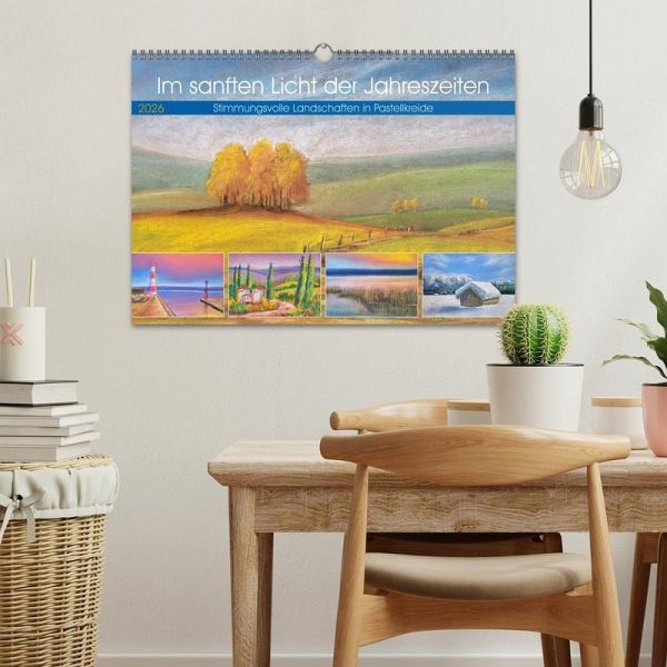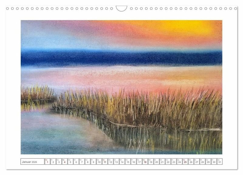 Tauche ein in die stimmungsvolle Welt sanft gemalter Landschaften. In zarten Farben und atmosphärischer Tiefe zeigt dieser Kalender zwölf Pastellkreidebilder, die den Zauber der Jahreszeiten einfangen. Ob frostige Winterlandschaften, blühender Frühling, goldener Herbst oder toskanischer Spätsommer, jedes Bild erzählt vom Wandel der Natur und lädt zum Verweilen ein.