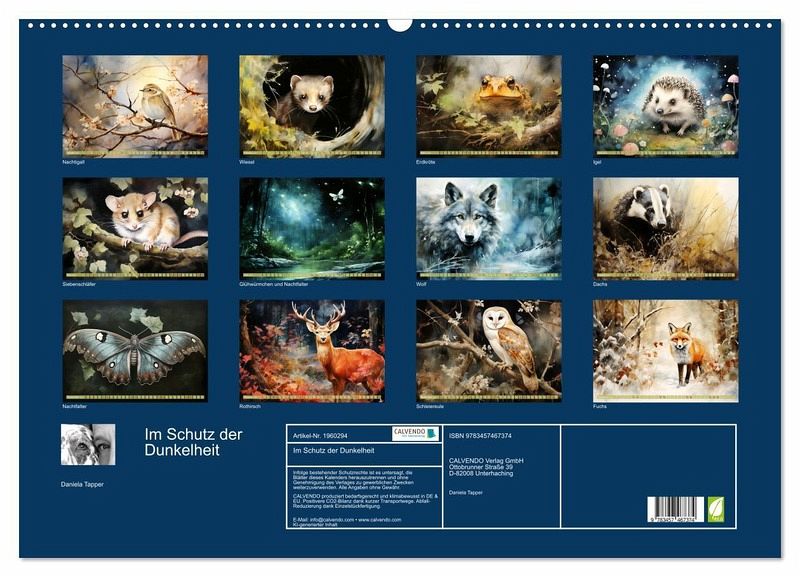 Möchten Sie einen Einblick in die verborgene Welt der nächtlichen Geschöpfe bekommen? Dieser Kalender zeigt Ihnen jeden Monat, Dank einer KI, eine bezaubernde Aquarellzeichnung eines nachtaktiven Tieres. Mit Aquarell können die feinen Details und Texturen dieser wunderbaren Tiere hervorgehoben, sowie die geheimnisvolle Stimmung und besondere Atmosphäre der Nacht exzellent einfangen werden.