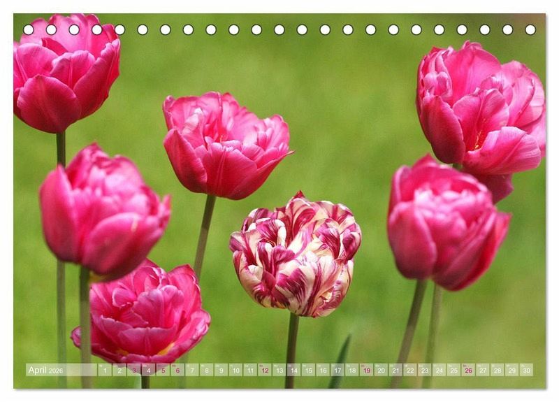 An diesem Kalender besticht die Vielfalt der Blütenformen und -farben, die stets ein harmonisches Bild abgeben. Und immer wieder bringt die Frühlingssonne die Blütenpracht zum Strahlen, sehr zur Freude des Betrachters. Genießen Sie den unendlichen Frühling das ganze Jahr lang.