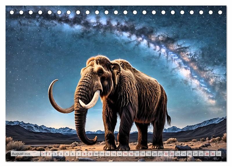 August: Einsames Mammut unter dem urzeitlichen Sternenhimmel