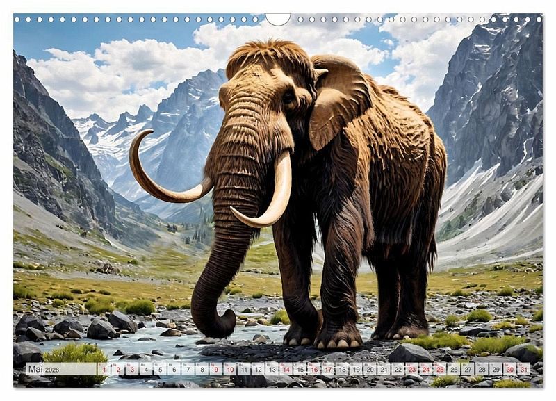 Mai: Beeindruckendes Mammut in vorzeitlicher Gebirgswelt